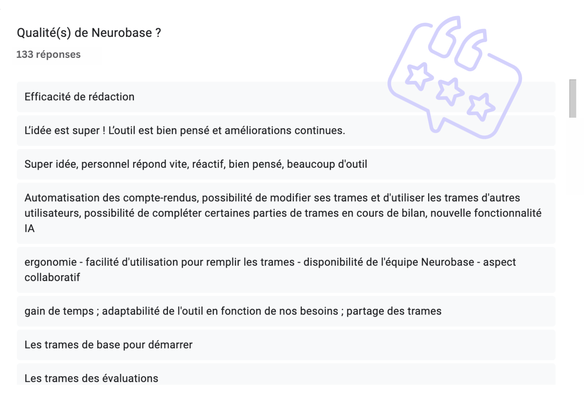 L’objectif est de comprendre votre pratique et de voir si Neurobase peut vraiment s’y adapter.